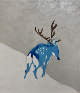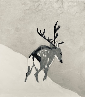 It lingers in the pauses between colors, where pigment hesitates and meaning gathers. It dwells in the generous space surrounding the form, where absence becomes as eloquent as presence. The deer seems less painted than listened to, as though the artist has allowed the canvas to remember something older than vision.