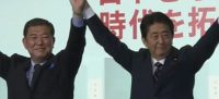 PM Shinzo Abe of the LDP is re-elected to serve the third term as the president of the ruling party PM Shinzo Abe of the LDP is re-elected to serve the third term as the president of the ruling...